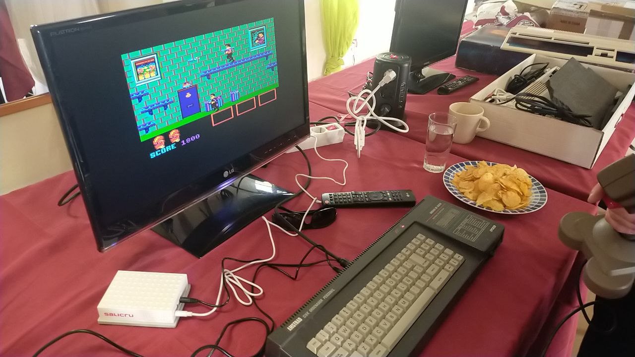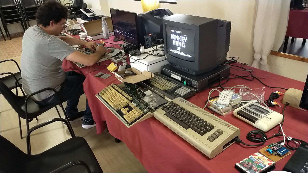 DaRKND se encargó de traer un arsenal de clásicos para el Commodore 64. Con su cassette, una Kung Fu Flash que le dejó NIvaria y una microSD de 16GB repleta de juegos, convirtió su rincón en una verbena digital. Por las pantallas desfiló el inevitable Donkey Kong, al que nadie puede resistirse. También se desempolvó el Grand Prix, con el que Miguel pasó buena parte de la tarde dando vueltas incansables al circuito, como si el tiempo no existiera.