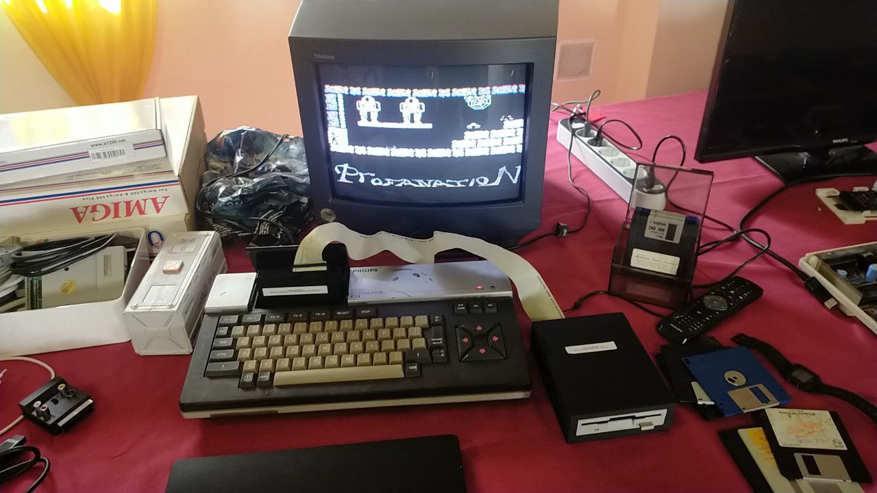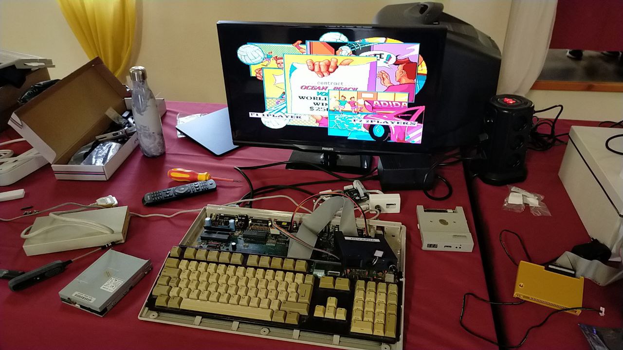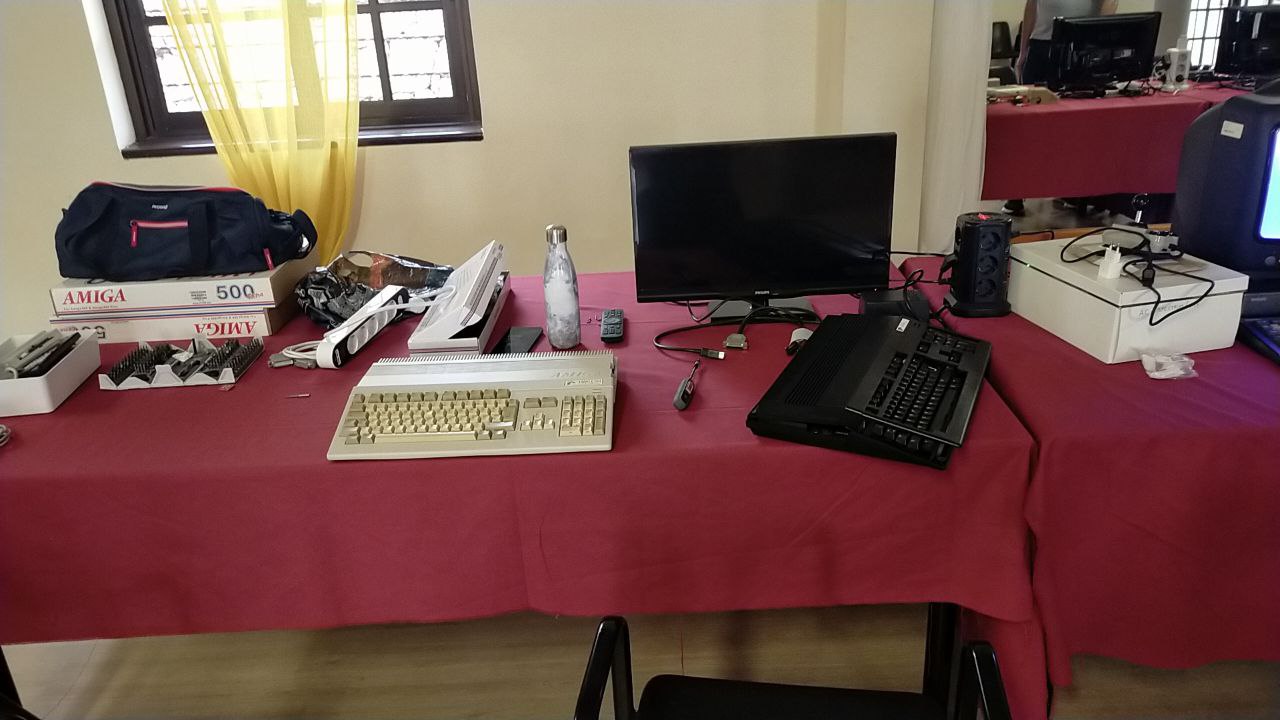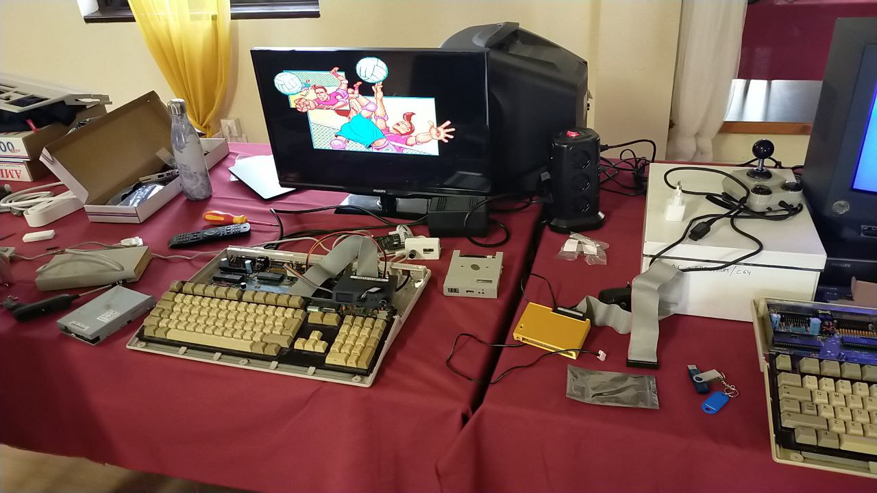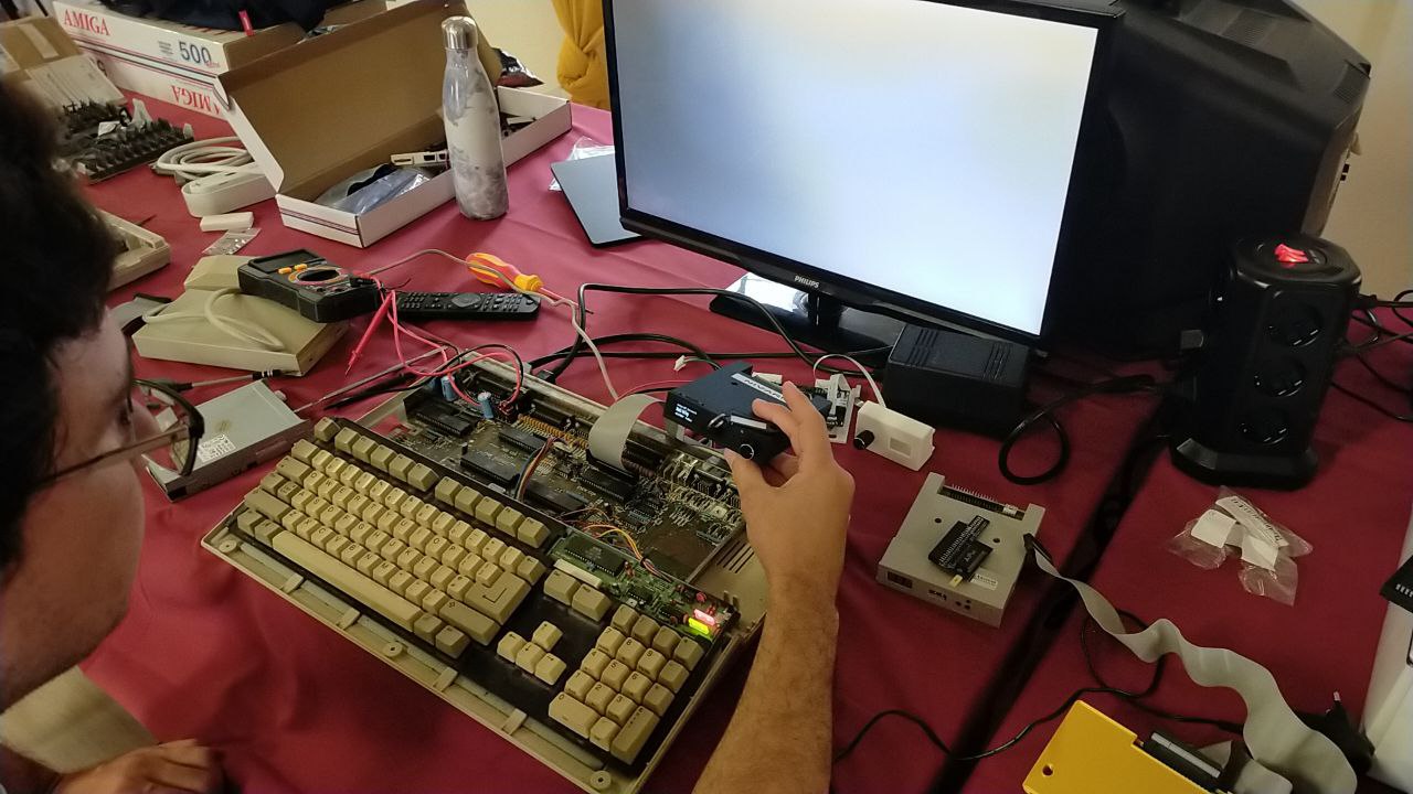 En un rincón, Namekop, convertido en médico de guardia, atendía a varios Amiga que pedían a gritos revisión. Uno no reconocía la Gotek, otro mostraba pantallas de error caprichosas. Hubo algún susto de última hora, pero el veterano reparador devolvió la vida a más de una máquina. Verlo trabajar era un espectáculo en sí mismo: destornilladores alineados, paciencia infinita y esa habilidad de quien escucha las entrañas de un ordenador como si fueran un corazón.