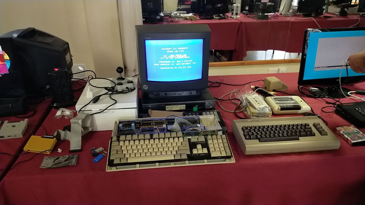 Los primeros en llegar fueron Namekop, DaRKND y Nivaria, como guardianes de la tradición. Encendieron sus máquinas, desplegaron cables, conectaron sus Gotek, y pronto los pitidos y menús familiares empezaron a llenar el aire. No tardaron en sumarse más socios, y poco a poco la sala se convirtió en una feria de sonidos: zumbidos de disqueteras, clics de teclados mecánicos, el chasquido de los joysticks.
