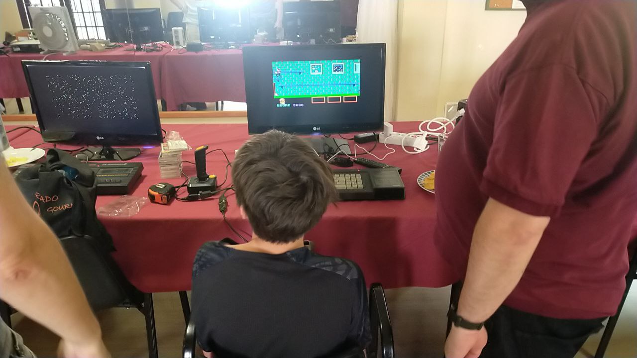 Uno de los momentos más entrañables del encuentro llegó con el Amstrad CPC 6128 de Miguel. Con su Gotek cargado de juegos y su deslumbrante paleta de colores, (sin duda la paleta más saturada de los 8 bits), el ordenador se convirtió en una herramienta pedagógica para los más jóvenes que asistieron. Mientras los niños probaban juegos y preguntaban con asombro, los mayores recordaban aquella mezcla de frustración y fascinación que suponía ver gráficos de 8 bits que parecían (por entonces) el colmo del realismo y también de dificultad, si bien los juegos de entonces eran condenadamente difíciles, más que los de ahora.