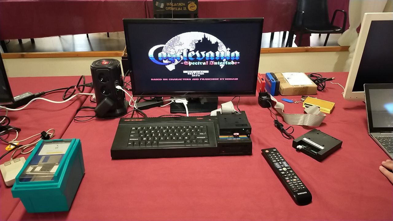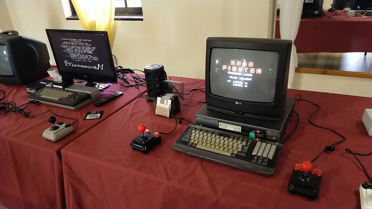 No faltaron otras piezas destacadas, como un MSX Philips VG-8020, en el que se cargaron juegos desde disquetes con impecable funcionamiento, y un ZX Spectrum +3 con Gotek externa, en el que Ayoze mostró una versión especialmente adaptada de Castlevania, una auténtica maravilla de la programación para 8 bits.