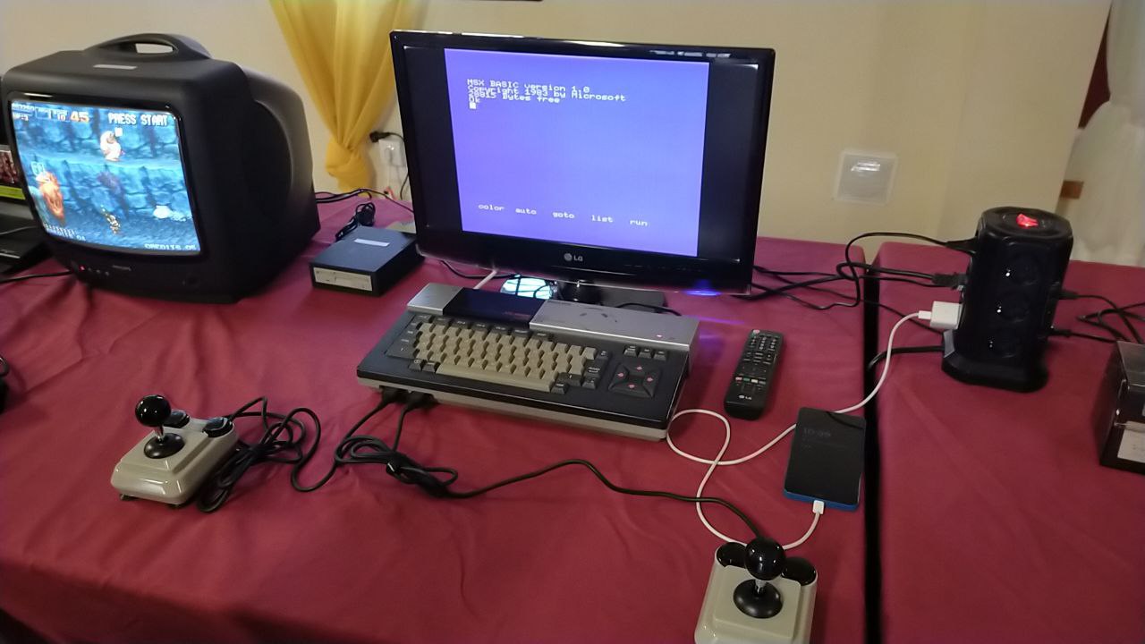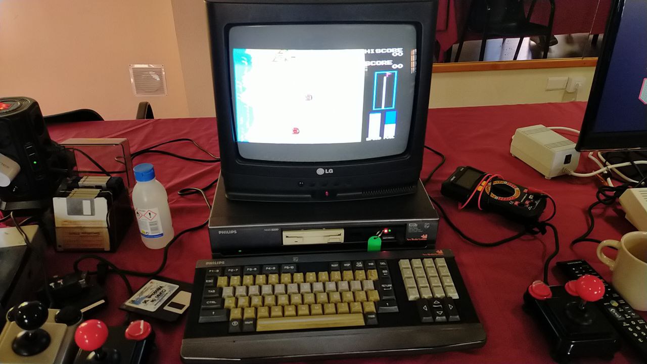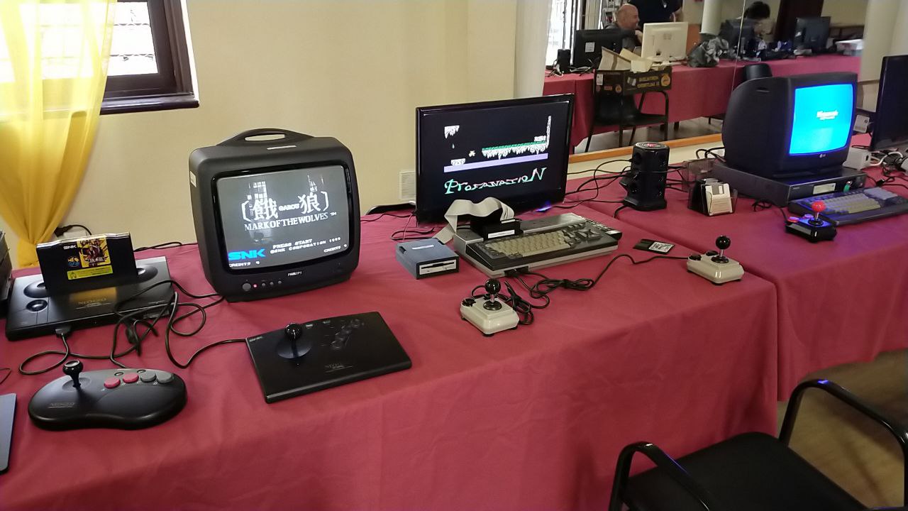 Nivaria, por su parte, aportó una excelente colección de mandos arcade —de los modelos Arcade R, muy conocidos por su robustez y ergonomía— y un MSX2 Philips NMS 8250 con Gotek integrada, desde el cual se pudieron disfrutar grandes títulos del catálogo MSX, incluidos clásicos de la escena española como Abu Simbel Profanation o La Abadía del Crimen.