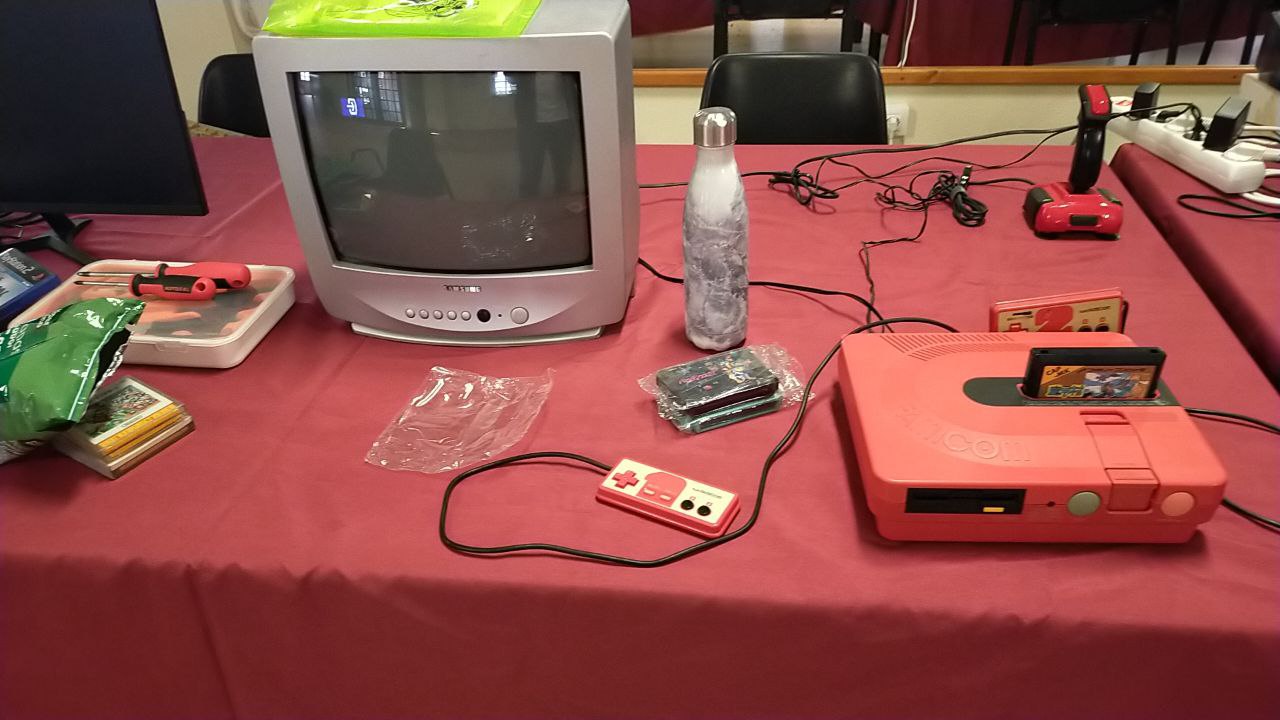 Durante la jornada, se preparó una mesa de exposición con distintos sistemas representativos de la era de los 8 y 16 bits, todos acompañados de sus monitores originales, lo que permitió a los asistentes experimentar la autenticidad de cada plataforma: