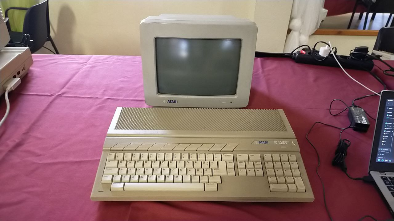 - Atari ST 1024 con su monitor, un sistema de 16/32 bits que se destacó por su interfaz gráfica GEM y su capacidad multimedia avanzada.
