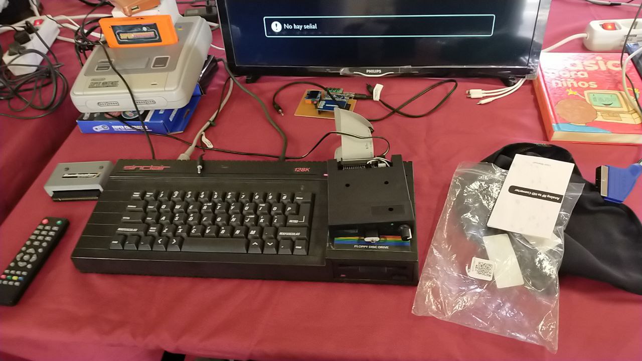 También trajo un Spectrum +2 con Dandanator, un cartucho multifunción español que permite almacenar y ejecutar decenas de juegos desde una microSD, además de un Spectrum +3 con disquetera interna. Para completar el arsenal, utilizó una Gotek externa que conectaba indistintamente a ambos equipos, permitiendo probar juegos desde imágenes digitales sin necesidad de soportes magnéticos.
