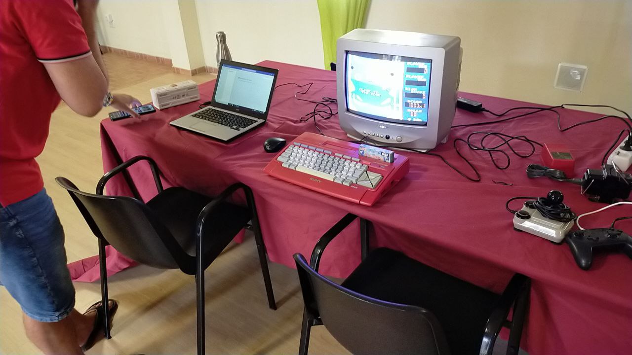 Uno de los primeros en abrir la veda fue DaRKND, que desembaló un MSX de primera generación japonés, un flamante Sony HB-10P en rojo Ferrari que atrajo todas las miradas. No solo por su tonalidad vibrante, sino también por su teclado de dos colores y los caracteres kanji impresos: toda una lección estética y cultural de los ochenta nipones. A su lado, un televisor CRT recordaba a todos que la fidelidad visual no se mide en hercios ni en “4K”, sino en la calidez de un fósforo encendido.