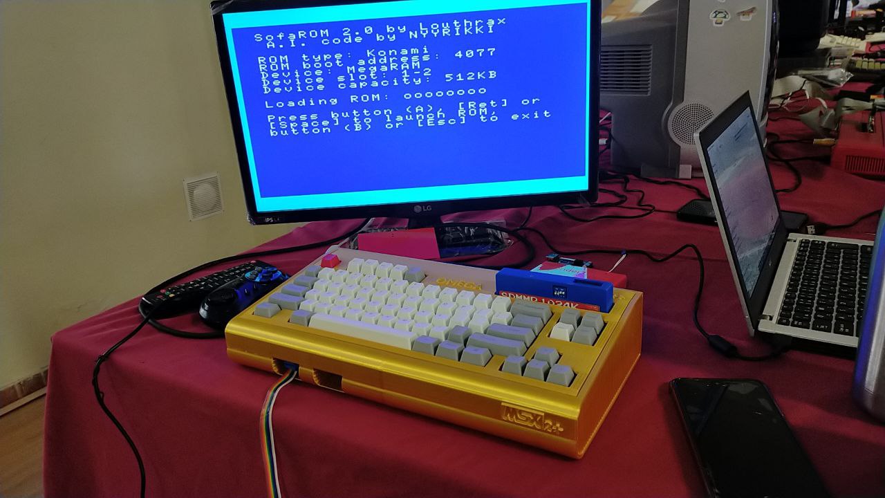 Uno de los momentos estelares llegó de la mano de Wurgado, que presentó su Omega MSX2+, una recreación artesanal en la que tanto la placa como la carcasa habían sido diseñadas por nuestro miembro en la distancia y gurú del MSX, el gran Joao.