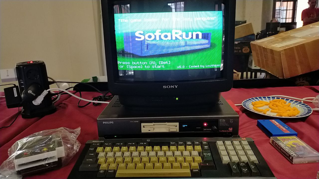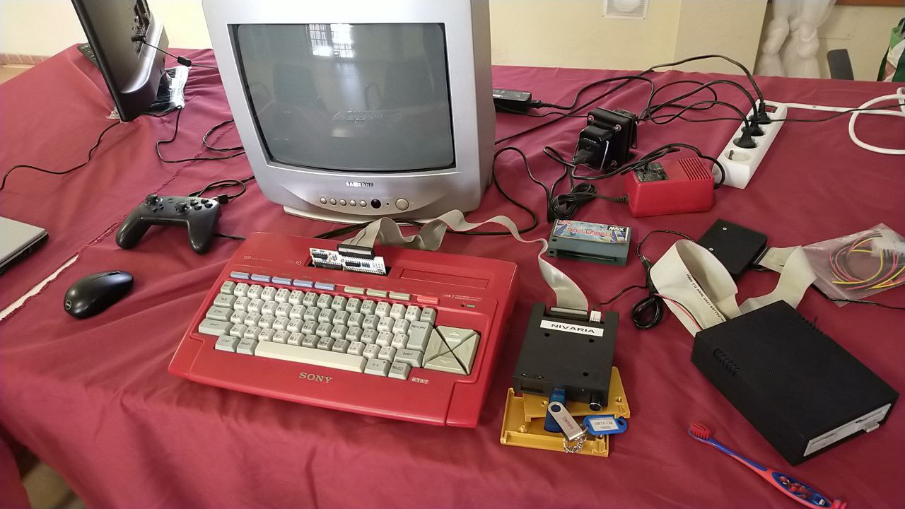 El incombustible Nivaria apostó fuerte, desplegando un arsenal digno de museo viviente: un MSX Philips NMS 8250 de segunda generación, modificado con una disquetera de PC y una gotek con pantalla y selector rotatorio; además de su inseparable Commodore Amiga 1200, equipado con una GoDrive con conmutador, que permitía alternar entre la disquetera interna y la gotek sin complicaciones. Una solución elegante para quienes viven entre mundos magnéticos y digitales.