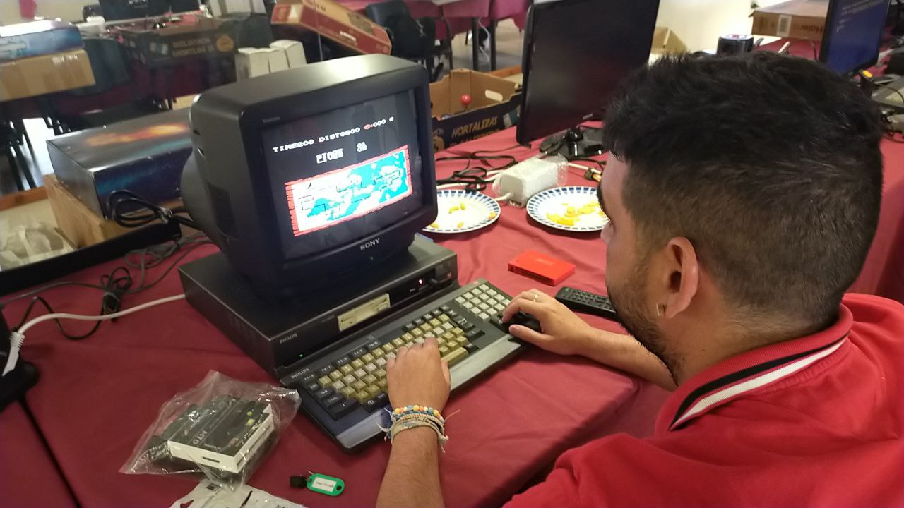 Para probar el buen estado del +2, se recurrió a un ritual que todos conocían: cargar juegos en cinta. American Turbo King, Elevator Action, Ballblazer o el ajedrecístico Masterchess desfilaron por la pantalla, mientras DaRKND intentaba desafiar a la IA del ajedrez sin recordar bien los movimientos. El público se lo tomó con humor: al fin y al cabo, no todos los héroes retro son campeones de tablero.